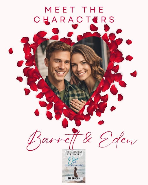 Barrett and Eden were developed from Embers to Ashes, book 4 of my Portrait of an Unlikely Affair series. I have discussed this before in prior posts (Dec 04 2023, āWhy Should You Read an Em Brooks book, part 4ā) but in Embers to Ashes, the characters of Eden and Barrett were ācreatedā by Seth Jacobson as a book series turned television series. Avonlea already had the role of Colonel Eden Magnuss and Brian took on the role of the Alchemist to give credit to his portrayal of Cade Bennett. I wrote the story as a character background so that I could have my Embers to Ashes characters easily discuss it. Like Portrait of an Unlikely Affair, I had never intended to share the story but it turned out to be worthy of sharing.